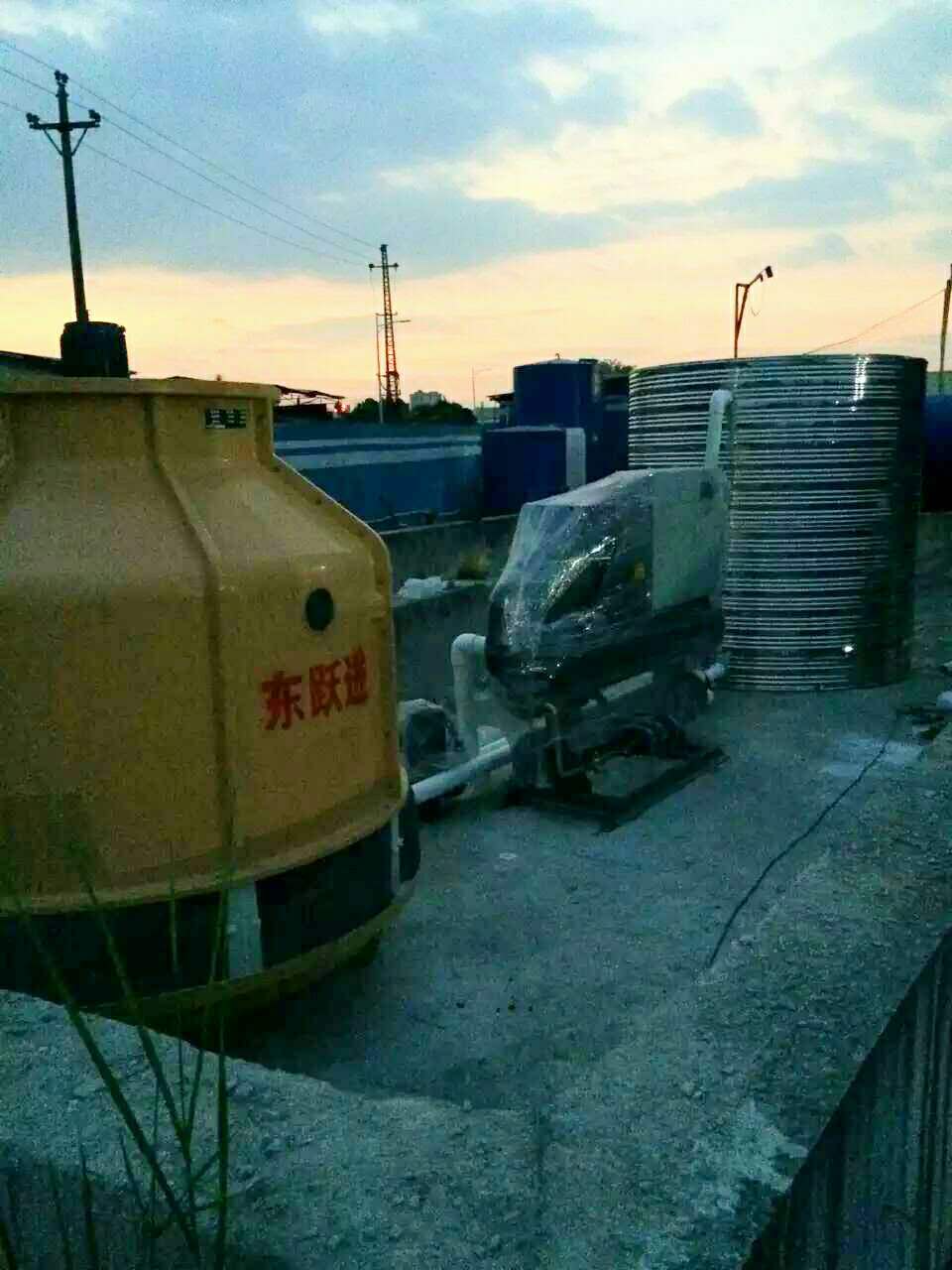 經(jīng)過供需雙方不斷的計算對比,最終確定選用水冷螺桿式冷水機3臺,并配套冷卻水塔、不銹鋼保溫水箱、循環(huán)水泵等輔助設(shè)備。
