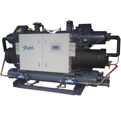 再流入蒸發(fā)器進(jìn)行蒸發(fā),而蒸發(fā)時要吸收熱量,從而就對蒸發(fā)器里的硫酸(槽液)進(jìn)行了降溫,降溫后的硫酸通過水泵輸送到電鍍(氧化)槽,就這樣一個循環(huán)過程。水冷式間接冷凍在電鍍(氧化)行業(yè)的制冷原理:冷卻塔底盆里的水通過水泵輸送到冷水機(jī)的冷凝器,對冷凝器進(jìn)行降溫。